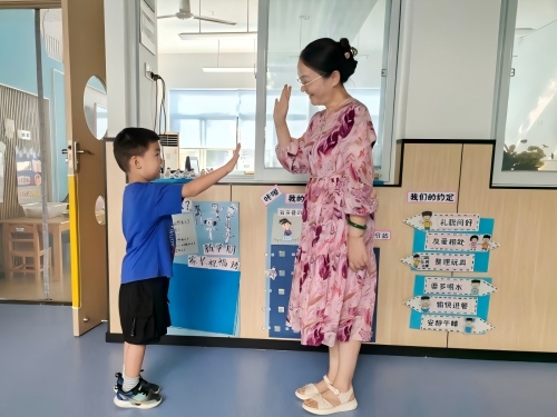 “老师早!”“谢谢你!”“请帮忙!”“对不起!”……幼儿园里,孩子们用标准的普通话学习礼貌用语,一句句甜甜的问候此起彼伏。老师们通过趣味互动、情景模拟等方式,鼓励孩子们大胆用普通话交流,让孩子们在和谐宽松的氛围中感受语言文化的魅力,学会用文明语言传递温暖与善意。